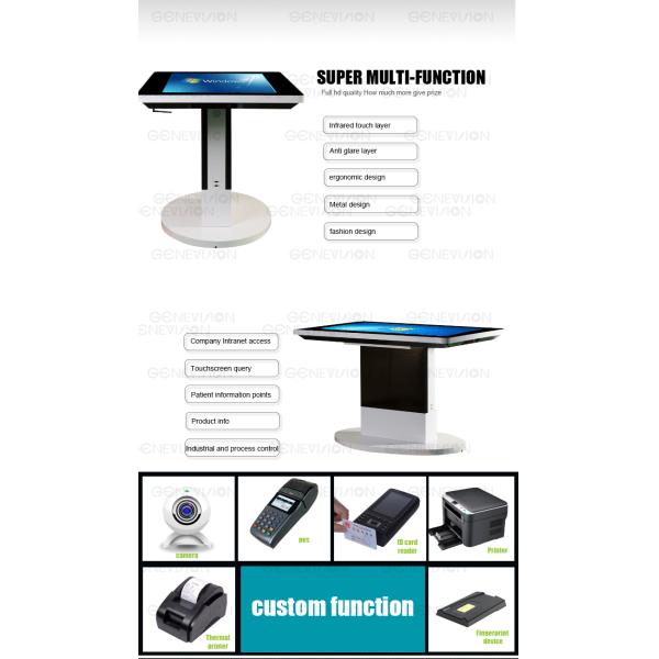 This smart touch table is good use in coffee shop and restaurants, multi-touch capacitive touch film support 20 fingers to touch at the same time, it can be inbuilt with food ordering system to provide self-service, also, advertising can be ongoing while consumers enjoying their food.